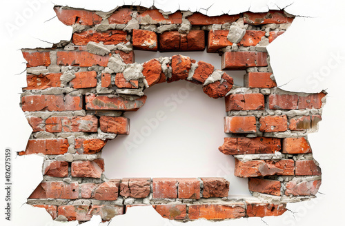 Bricks, a broken wall with a hole in the middle, isolated on a white background, vector illustration png photo stock, high resolution, clear colors, detailed, in the style of a hyperrealistic artist.