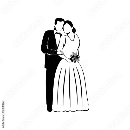 bride and groom silhouette vector illustration. wedding sign and symbol.