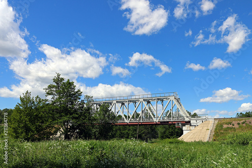 bridge, sky, construction, steel, blue, building, cloud, river, metal, architecture, structure, transportation, high, nature, forest, harmony