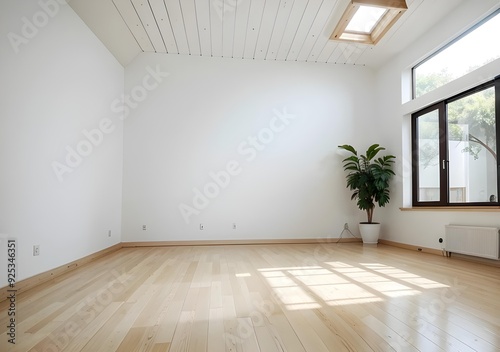 Bright and Airy Empty Room with Wooden Flooring and Skylight