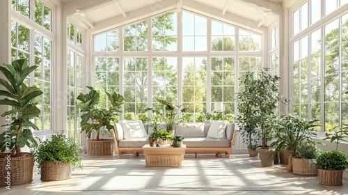 Bright and Airy Sunroom with Abundant Green Plants and Natural Light