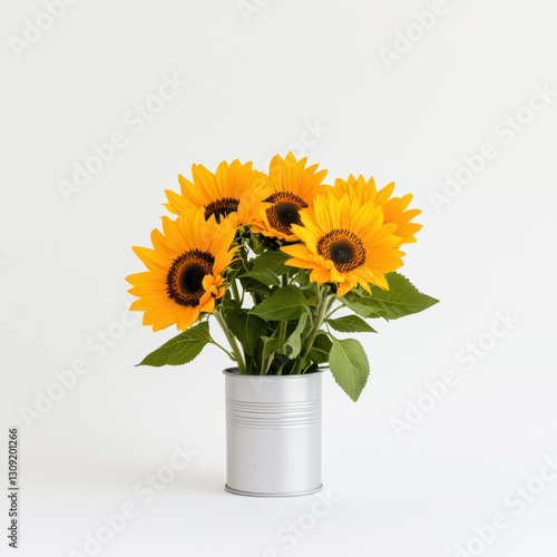 sunflower, bloom, bright, bold, flower, plant, nature, botanical, flower petals, green, vibrant, decoration, beauty, floral, arrangement, simple, freshness, sunlight, cheerful, rustic, summer, growth, organic, photo, design, yellow, detail, elegance, joy, background, artistic, isolated, indoor, indoor plant, container