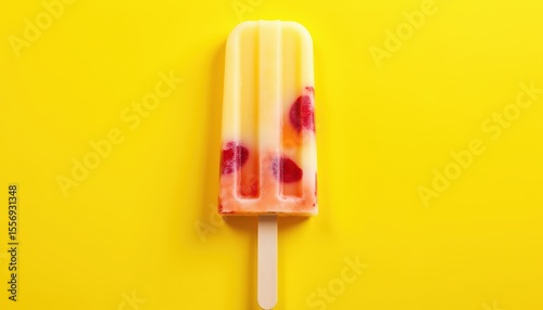 Bright and Colorful Fruit Popsicle on Vibrant Yellow Background