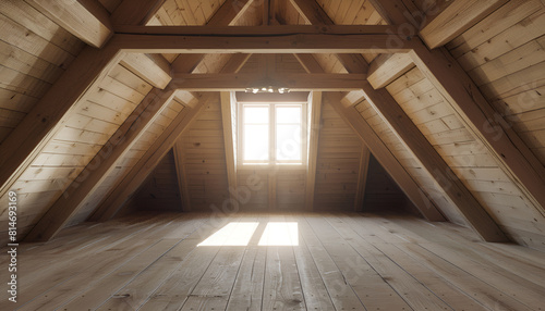 Bright attic empty bedroom in the fashionable apartment