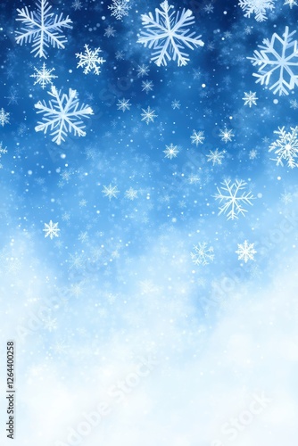 Bright blue background adorned with floating snowflakes, creating a serene winter ambiance, Ideal for seasonal marketing, holiday decorations, or as a backdrop for winter-themed graphics,