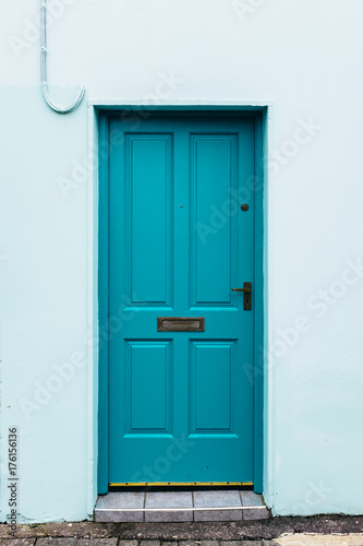 painted, outside, outdoors, ireland, house, home, exterior, exit, europa, entrance, door, day, bright, blue