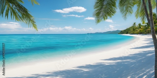Bright blue sea, white sandy beach, clear sky , Summer beach holiday activity concept