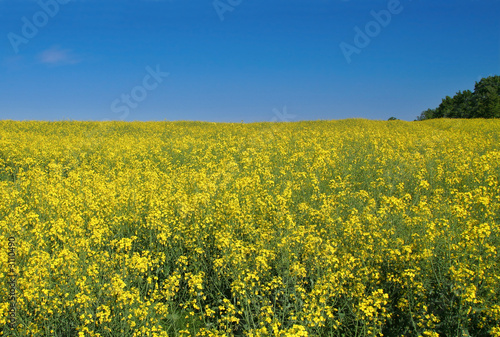 bright, high-coloured, summer, canola, rape, blue skies, clear sky, field, meadow, yellow, plant, sky, many-coloured, idylli, horizon, nobody, landscape, peaceful, rural, blooming, bloom, flower, blue, tree, cultivation, cultivated, gorgeous, wallpaper, clear, clean