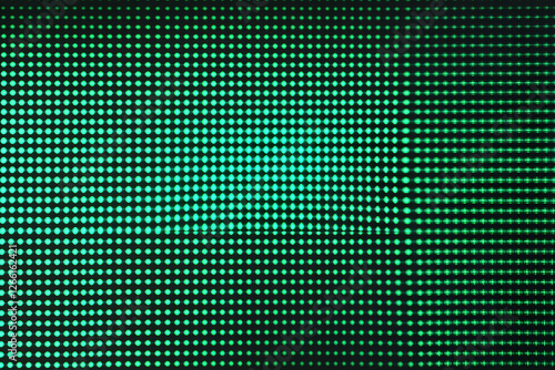 Bright colored green LED wall with green pattern close up background. Abstract neon green pixel texture bg video screen. TV pattern background with square noise effect.