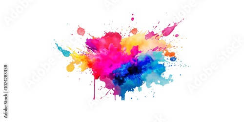Bright colorful watercolor splash splatter stain brush strokes on white background. Modern vibrant aquarelle spot. Rainbow trendy isolated design on white. Element. Vector watercolor illustration. art