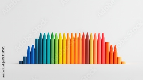 Bright crayons arranged in rainbow order on a table creative play 3D illustration