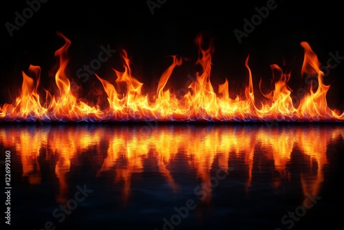 Bright flames dance over a reflective surface creating a mesmerizing visual display at night