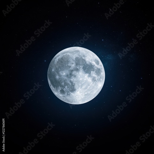 Bright Full Moon in Night Sky Over Starry Background