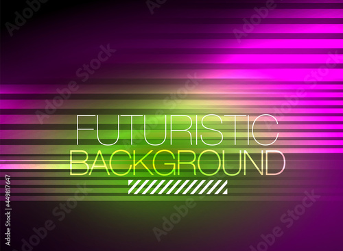 Bright neon color techno abstract background, shiny glowing neon lines in the dark background