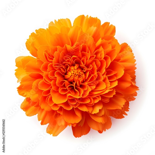 Bright orange marigolds in full bloom, displaying layers of intricate petals, isolated on a plain white background.