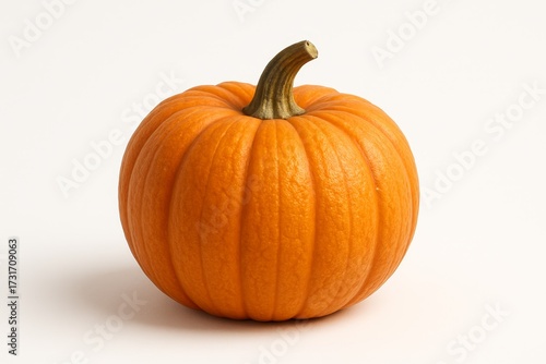 Bright orange pumpkin with smooth surface and distinct ridges, perfect for autumn and Halloween themes, isolated on white background.