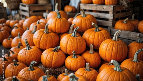 Bright orange pumpkins gather tightly in an animated market, exuding rustic charm that brings forth the joy of the harvest season, urging visitors to embrace the spirit of autumn celebrations and