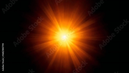 Bright orange sunburst effect with rays on black background
