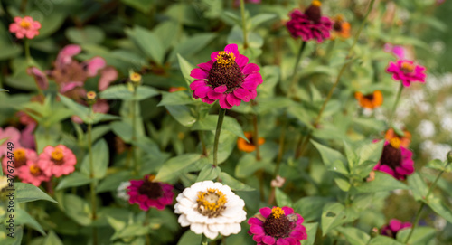 flower, garden, flora, nature, bloom, blossom, floral, green, blooming, colours, colourful, plant, zinnia, summer, pink, flowerbed, beautiful, background, red, natural, bright, season, botany, beauty, gardening, purple, fresh, leaf, park, floriculture, botanical, pistil, field, pollen, vibrant, head, environment, flower petals, herbal, leaf, meadow