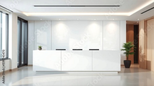 reception, desk, white, modern, office, interior, lobby, area, design, furniture, hotel, business, corporate, architecture, entrance, minimalism, clean, contemporary, light, space, workplace, building, room, hall, clinic, plant, pot, countertop, style, minimalist, stylish, workspace, decor, indoor, bright, hallway, empty, waiting, open, counter, waiting room, decoration, wood, elegant, simplicity, hospitality