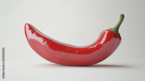 Bright red chili pepper with glossy surface placed on a smooth white background