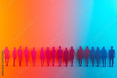 paper, people, figure, colourful, vibrant, bright, cheerful, optimistic, positive, uplifting, hopeful, playful, fun, group, community, oneness, togetherness, teamwork, support, diversity, inclusion, silhouette, gradient, background, standing, row, line, arrangement, pattern, design, illustration, cut-out, style, modern, abstract, minimal, simple, concept, connection, harmony, collectivity, solidarity, team
