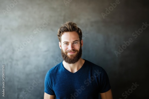 smile, happiness, male, black, shirt, grey, background, portrait, positivity, confidence, joyful, friendly, casual attire, warm, inviting, personal, relaxed, bearded, candid, expression, lifestyle, personality, cheerful, youthful, approachable, social, modern, charismatic, stylish, vibrant, fun, warmth, portraiture, man, character