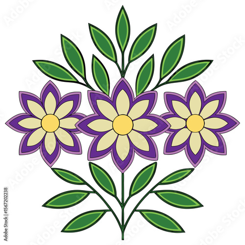 Bright Spring Flower Bouquet Clipart Purple Petals & Green Leaves