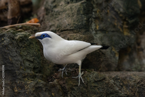 Bright White Plumage on a Bali Myna with a Blue Eye Patch in a Tree