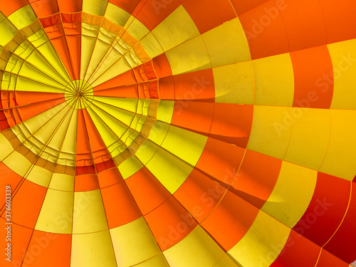 Bright yellow and orange fragment of hot air balloon shot from below