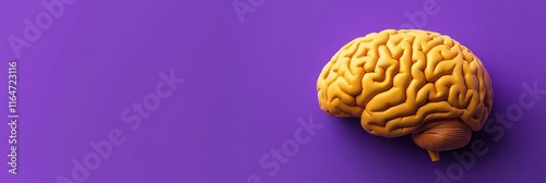 Bright Yellow Brain Model on Purple Background for Education and Creativity. Epilepsy awareness, Purple Day