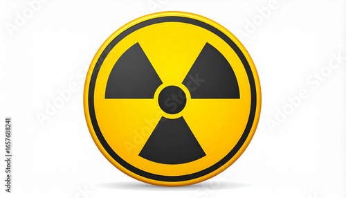 Bright yellow circular radiation warning symbol with black trefoil design, indicating radioactive hazard.