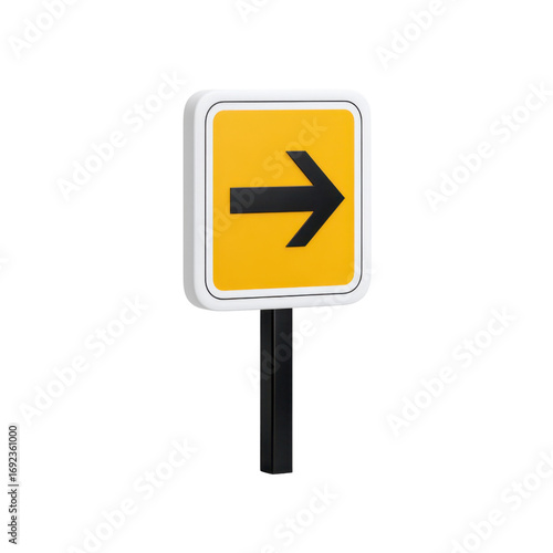 Bright Yellow Right Arrow Traffic Sign Indicating Direction for Vehicles and Pedestrians on Roadway