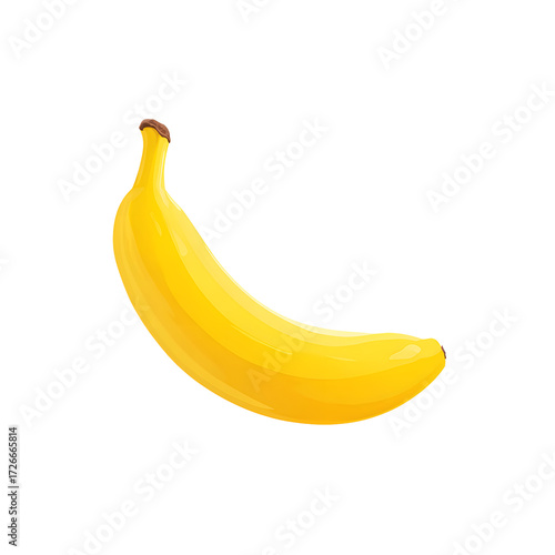 Bright Yellow Single Banana Digital Art Isolated Graphic Element