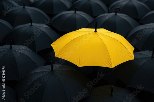 umbrella, crowd, yellow, waterproof, background, accessory, business, concept, black, team, colours, security, idea, rain, leadership, colourful, corporate, safety, leader, season, weather, parasol, protection, identity, individuality, safe, alone, bright, different, group, many, nobody, object, 1, 1, open, protect, protective, special, standing, stylish, unique