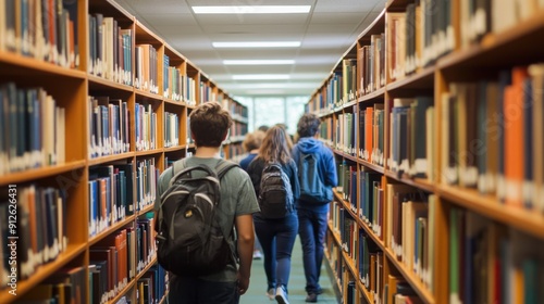 freshman, student, college, library, exploring, browsing, bookshelf, studying, cognition, education, academic, research, book, reading, young, adult, university, learning, higher, teamwork, collaboration, group, study, success, diversity, resource, campus, discovery, student, life