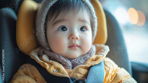 baby, carseat, winter, drive, children, eye, indoor, cosy, scenery, expression, transportation, young, cute, safety, infant, joy, travel, observing, curious, comfort, parenting, family, happiness, adventure, snow, vehicle, toddler, warmth, moment, sharpened, quiet, innocence, nature, exploration, city, light, childhood, joyfulness, engagement