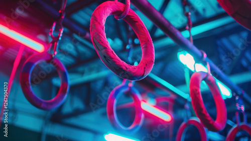 gym, fitness, training, ring, neon, colourful, exercise, equipment, athletic, vibrant, physical exercise, sport, physical, activity, health, strength, performance, hanging, indoor, illumination, modern, design, facility, lifestyle, energy, dynamic, motion, challenge, agility, balance, coordination, fun, play, competition, teamwork, community, motivation, inspiration, youth, development, skill, practice, routine, improvement, sharpened, determination, environment, space, creativity
