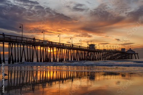 Brilliant sunset over a wooden beach pier. Imperial Beach, California, United states of America