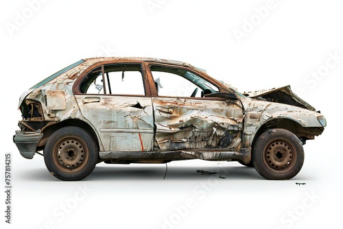 Broken car isolated on white background Generative Ai