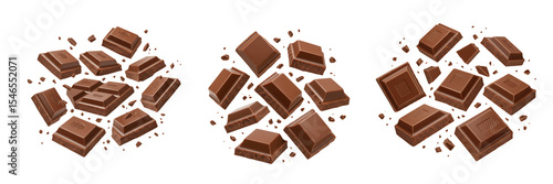 Broken Chocolate Bar Pieces with Crumbs On Isolated Transparent Background