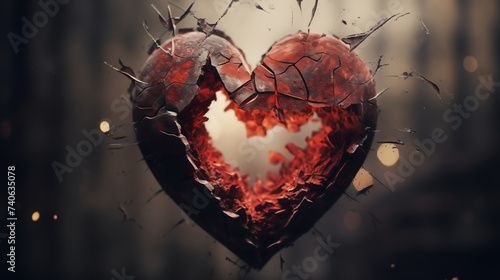 Broken Heart, an abstract image of a broken heart, hardcore style background, feeling unhappy in love, broken heart, sad, depressed, regret with belove one. Human's feeling, Emotional abstract picture