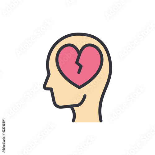 icon, coloured, outline, simple, minimalist, solid, thin, line, stroke, creative, colourful, style, modern, detailed, transparent, isolated, illustration, symbol, web, nubes, love, romance, emotion, valentine, romantic, vector, feeling, marriage, human relationships, broken, break, element, divorce, breakup, sad, heartache, fractured, red, conflict, problem, broken heart, people, head, mind, thinks