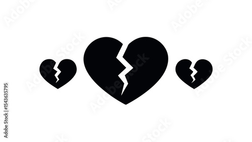 Broken Heart Icon Set Vector Graphics of Cracked Hearts for Design Projects, Representing Heartbreak, Loss, and Sadness in Various Sizes