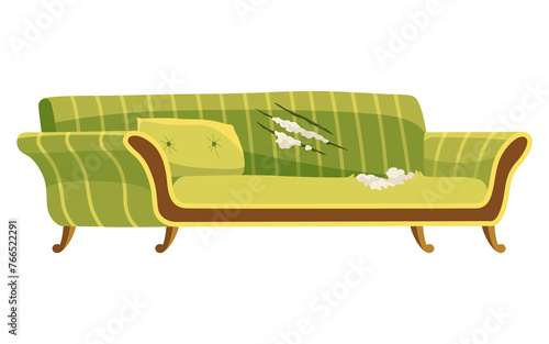broken, sofa, torn, furniture, seat, dirty, interior, messy, damage, hole, concept, flat, illustration, isolated, design, symbol, background, ragged, mess, abandoned, disorder, room, junk, dump, lounge, couch, white, repair, living, pillow, object, empty, cushion, ripped, vintage, old, apartment, garage, indoor, view, fabric, element, home, cartoon, decoration, junkyard, graphic