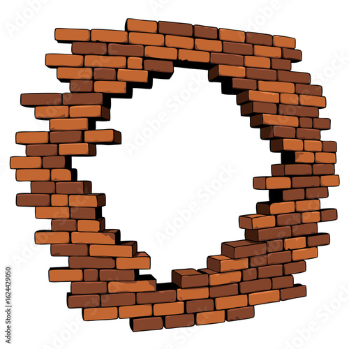 brick, wall, broken, circular, opening, structure, texture, brown, construction, flat, material, design, round, background, interior, architecture, renovation, building, visual, frame, empty, isolated, space, detail, pattern, border, cement, curved, masonry, artwork, craft, industrial, decorative, graphic, modern, classic, artistic, home, property, clean, surface, repair, illustration, vignetting