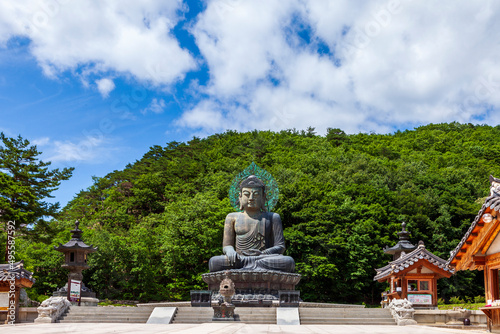 2011, architecture, buddha, buddhism, day, forest, horizontal, korea, historical building, mountain, no people, outdoors, plant, south korea, statue, temple, traditional, travel, tree