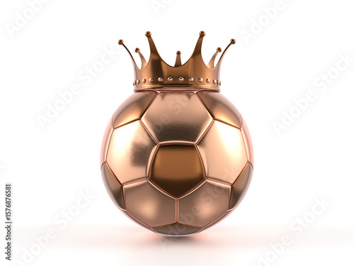 football, soccer, ball, sport, team, game, crown, trophy, award, prize, winning, winner, champion, succeed, reward, success, king, queen, championship, bronze, third, first, sphere, leisure, equipment, defocused, closeup, texture, isolated, competition, object, design, detail, recreation, white, render