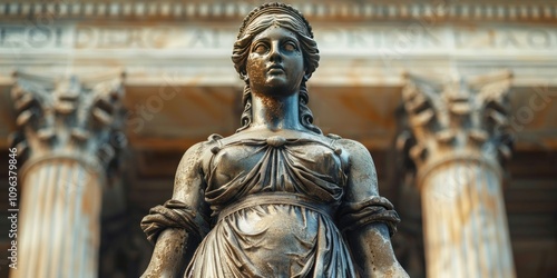 statue, bronze, woman, classical, building, column, crown, art, sculpture, architecture, ancient, greek, roman, history, culture, heritage, historical building, public, space, city, urban, daytime, sunlight, shadow, detail, closeup, texture, pattern, stone, marble, ornate, grand, impressive, majestic, beautiful, elegant, formal, traditional, decorative