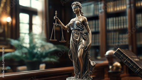 Bronze Statue of Lady Justice in a Law Office Setting